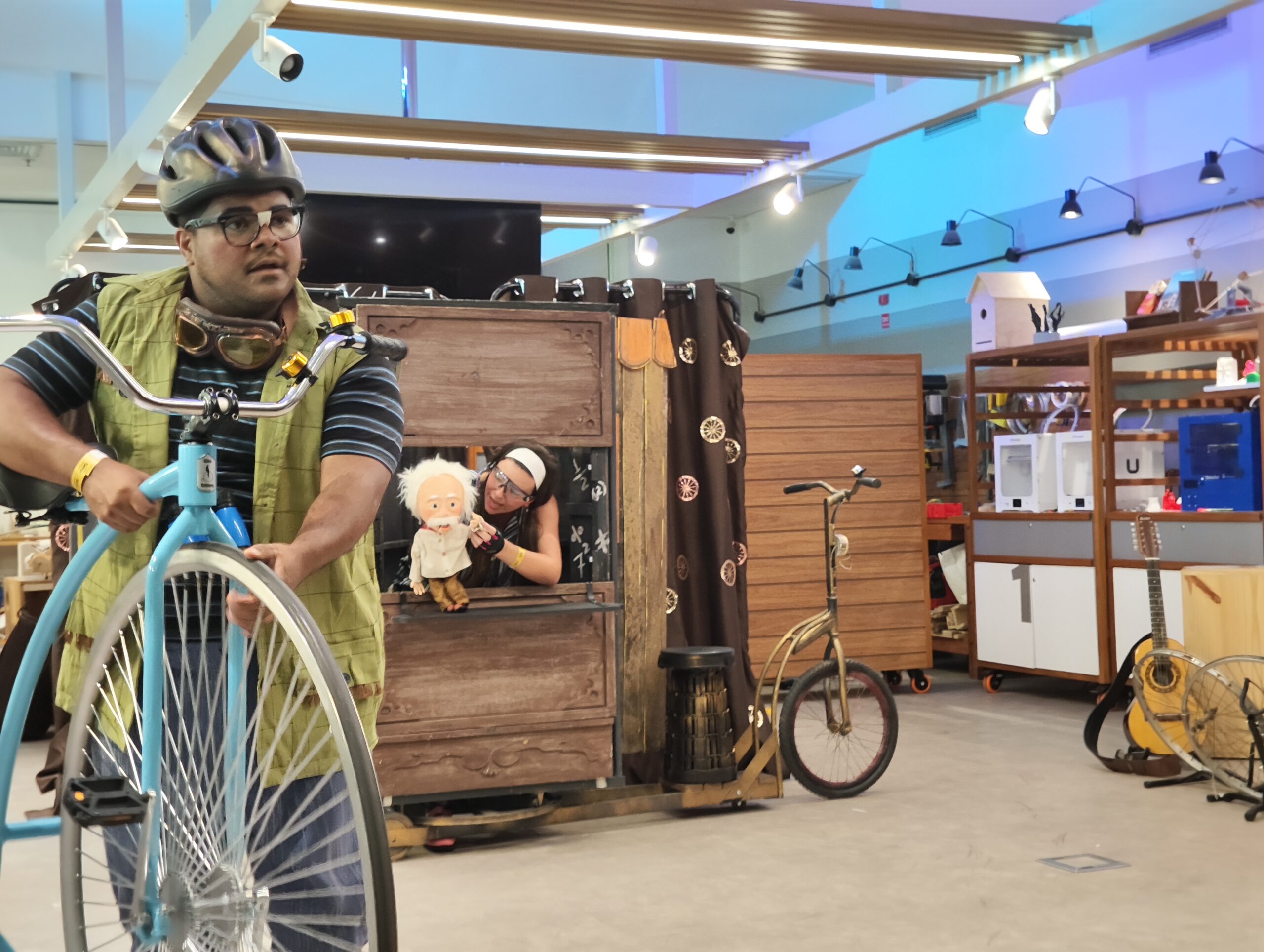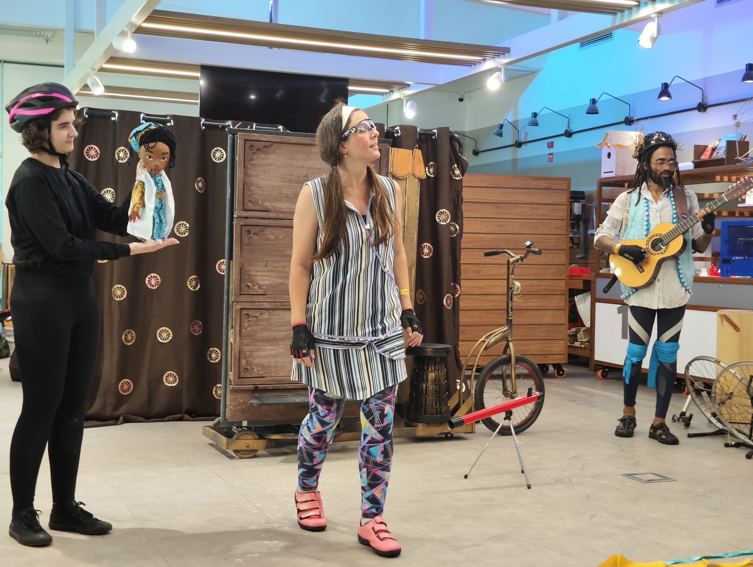 “A Bicicleta Mágica” é um espetáculo que explora múltiplas linguagens artísticas, incluindo teatro de bonecos. A cenografia é adaptada para diferentes espaços, permitindo que a magia aconteça tanto em teatros convencionais quanto em praças, parques e escolas.